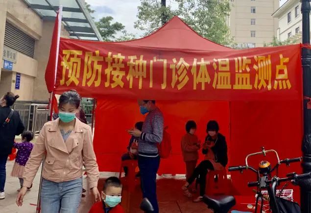 由于文冲街社区卫生服务中心位于小区商业楼一楼,中心南北向各有一个门,进入人员较多。特殊时期,为安全期间,物业方将两个门用途进行细分,一个门供普通病号就诊进出,一个供幼儿防疫保健就诊进出,以便分流管理就诊人群。