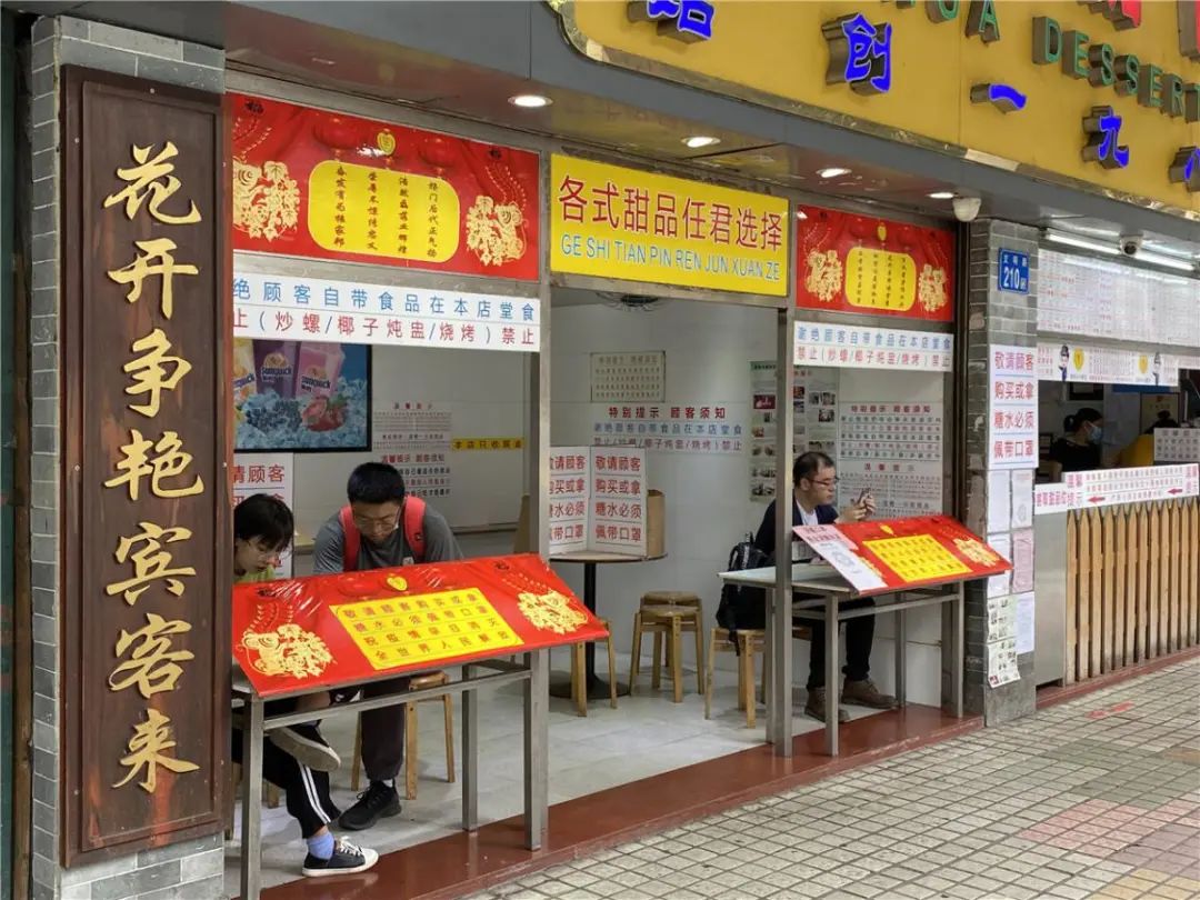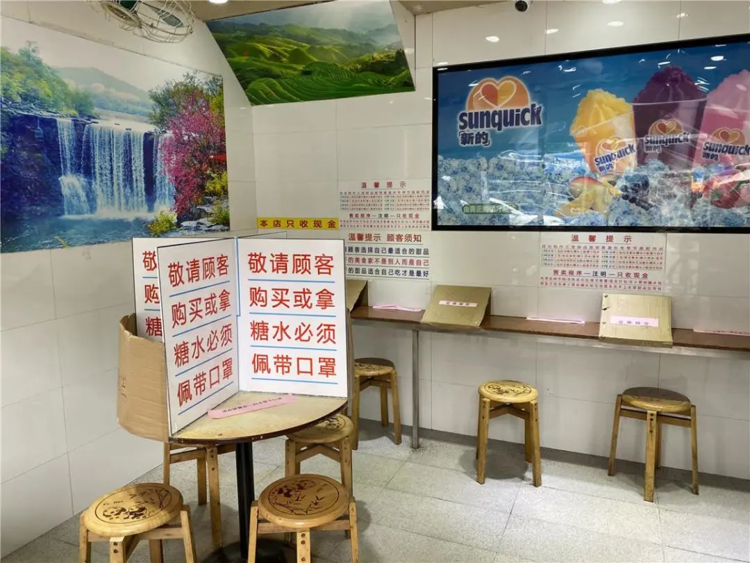 百花甜品已按照相关指引,做好防疫工作,引导堂食的顾客隔座堂食,并在挡板写好提示:顾客购买或拿糖水必须戴口罩,在桌子上张贴提醒,在就餐前最后一刻摘下口罩。