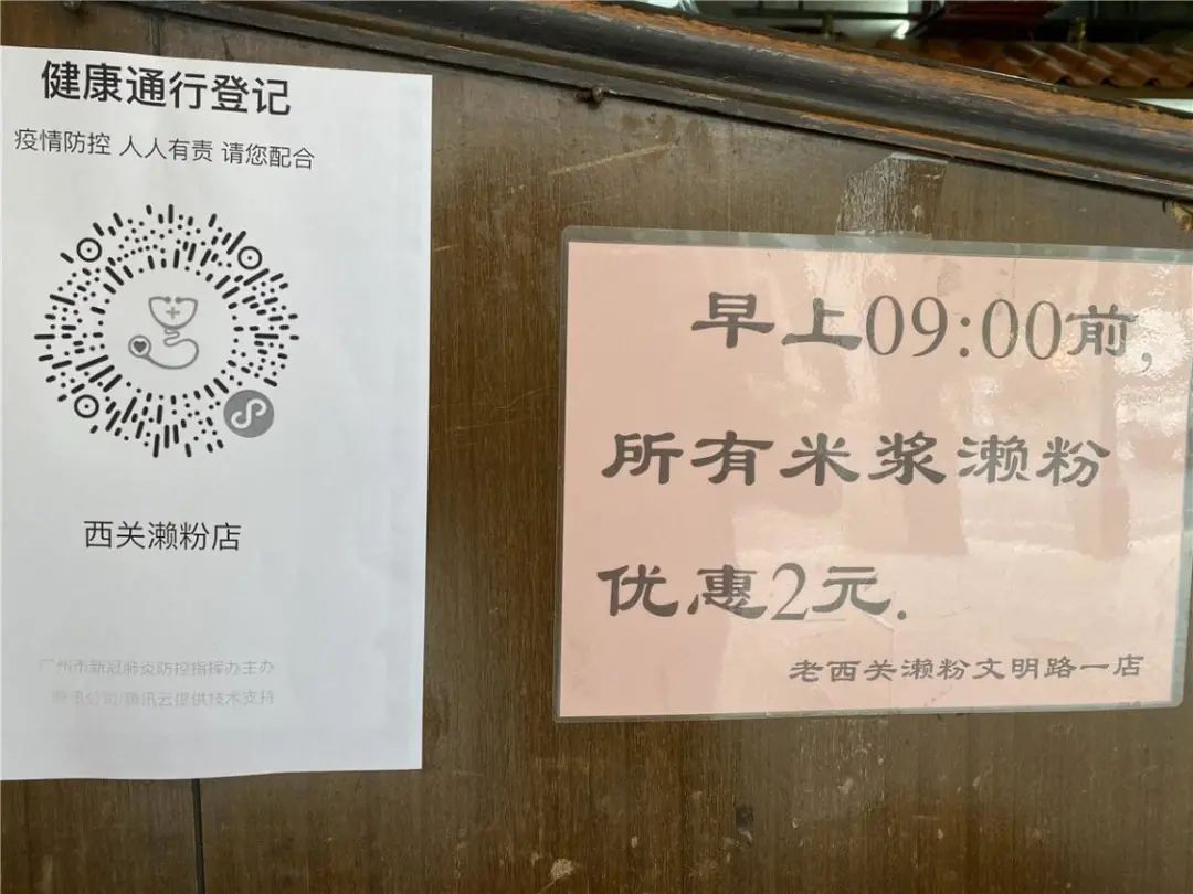 位于文明路一店的老西关濑粉,在过年后一直都有开门营业,并实行了“早上9:00前,所有米浆濑粉优惠2元”的优惠折扣,同时开通了外卖平台,街坊们足不出户便可享受到广州地标美食。