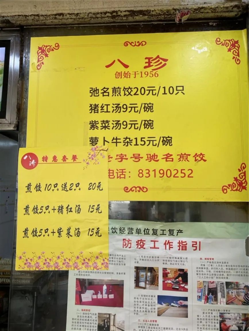 位于北京路的八珍餐厅,有着地道的广式味道,煎饺、猪红汤等美味小吃,让大家回味知足。小e在现场发现,八珍餐厅现推出了特惠套餐,有“煎饺10只送2只”“煎饺5只+猪红汤”“煎饺5只+紫菜汤”等供顾客选择购买,并开通了外卖配送服务。