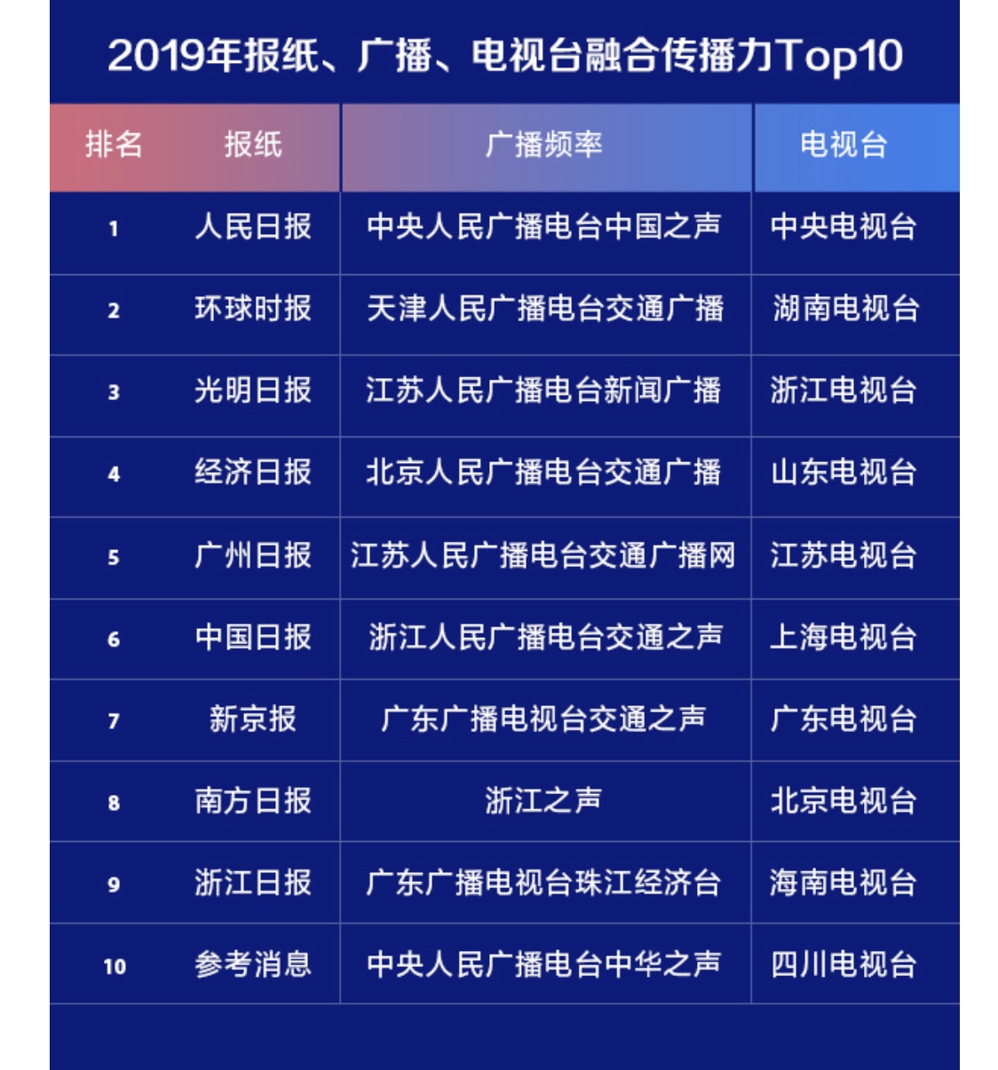 据悉,2020年初,人民网研究院建构了媒体融合传播指数指标体系,对我国295份报纸、300个广播频率、34家电视台2019年全年的融合传播力进行评估,撰写完成《2019中国媒体融合传播指数报告》,包括《2019年媒体融合传播指数总报告》以及《2019报纸融合传播指数报告》、《2019广播融合传播指数报告》和《2019年电视融合传播指数报告》三个分报告。