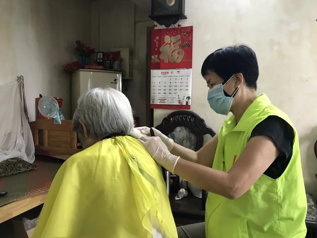 上午九点开始,一直忙到中午,曹霞芳为来自5户家庭的6位长者剪掉了“烦恼丝”。曹霞芳此前也参与过社工站组织的上门义剪活动,据她介绍,大多数困难长者对发型没有特别的要求,一般都希望尽量剪短一点。“我会根据他们的头型来剪,剪短的同时也剪得好看一些。”