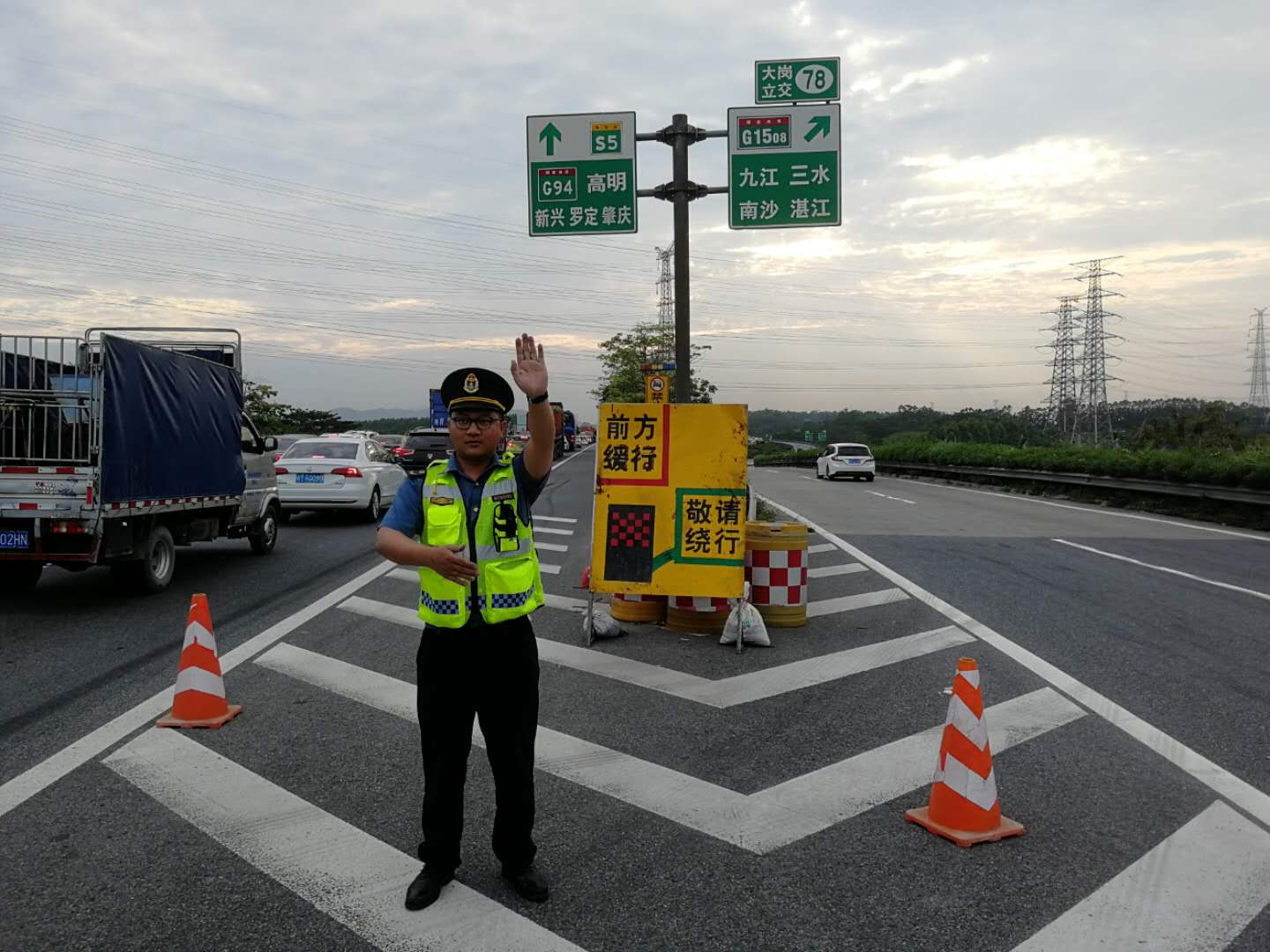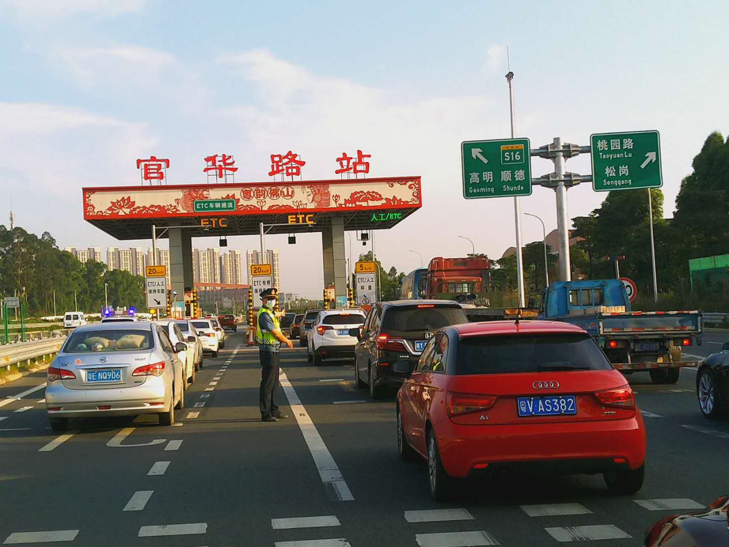 佛山市公安局交通指挥中心密切监控高速公路与地方公路交接处的车流量变化,统筹警力的调配加强连接路口的交通疏导,合理调整路口交通信号配时,提高路口通行能力。此外,高速公路业主单位开足全部票道,安排人员在收费站广场指挥,指引小车和货车按道行驶,保障ETC车道正常通行,提高收费站通行能力。