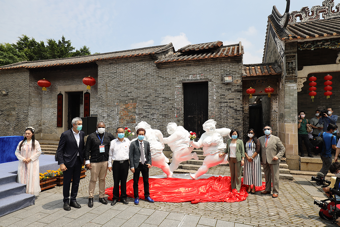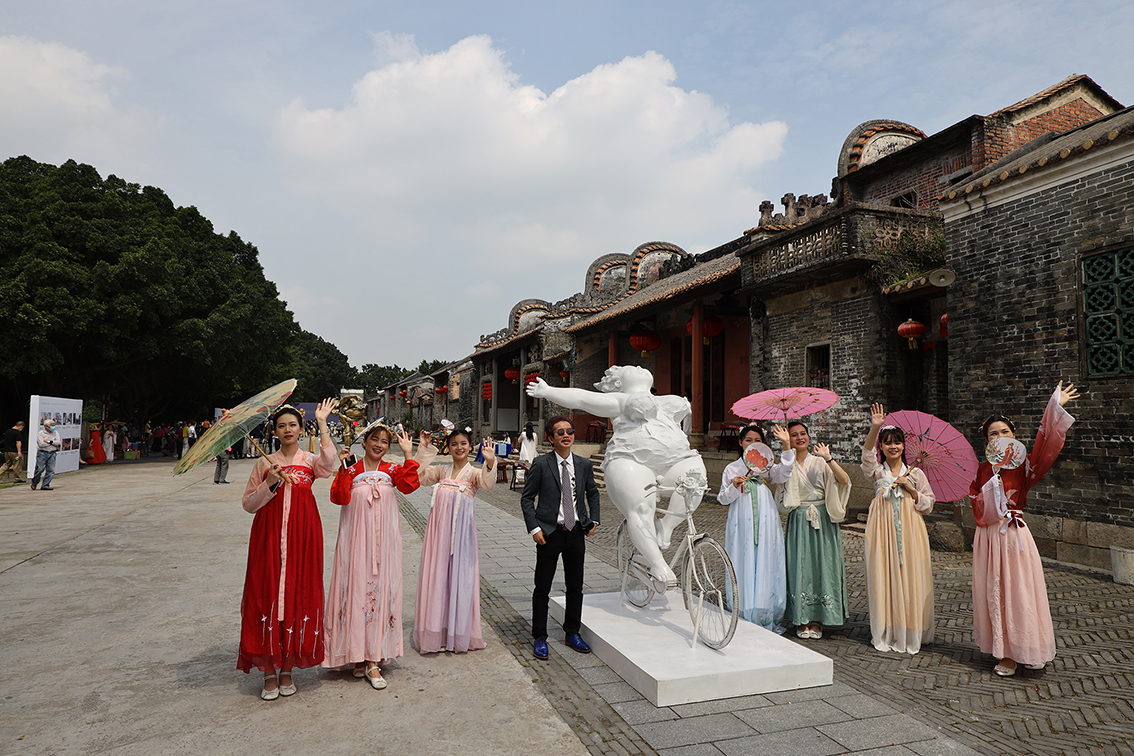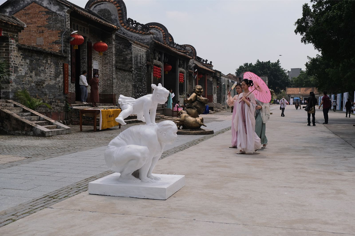 由广州市委宣传部指导,广州文化广电旅游局主办的“广州人游广州”快乐乡村游暨许鸿飞雕塑作品乡村巡展启动仪式于4月30日上午十点在花都塱头古村举行。