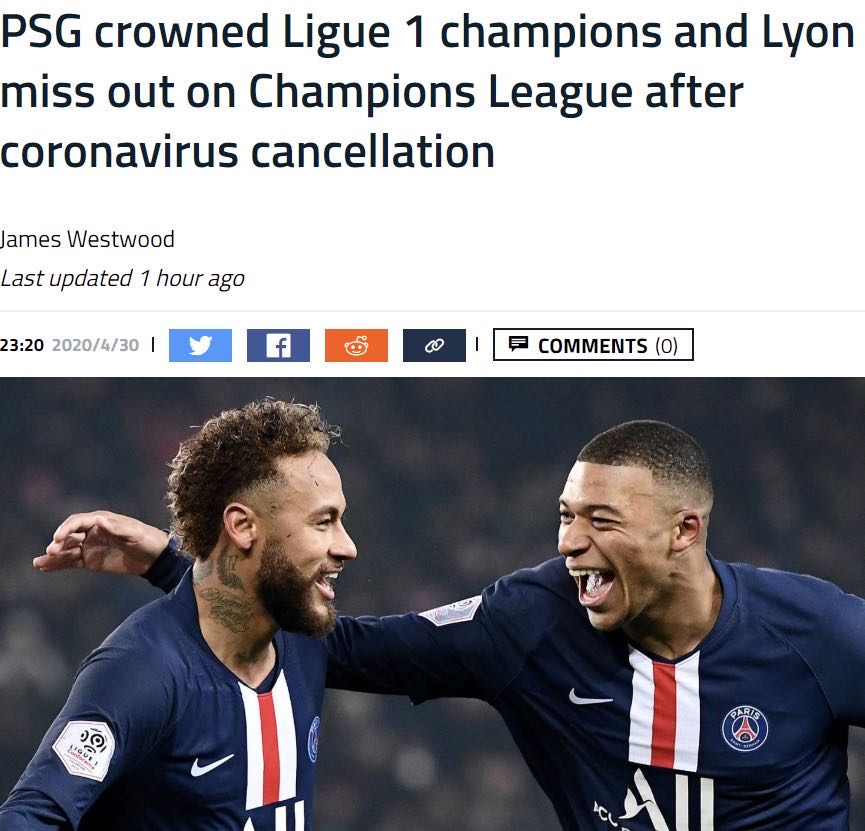 此前法国已经宣布,9月前暂停一切体育赛事,这也意味着法甲赛季提前结束。而关于冠军归属等相关事宜,法国足协在30日也做出了决定。关于联赛冠军、欧战资格和升降级等问题上,都以本赛季法甲的场均积分为准。
