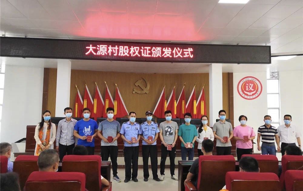 五一节前夕,大源村举行股权证颁发仪式,近万名村民获发股权证,标志着该村股份合作制改革工作全面完成。
