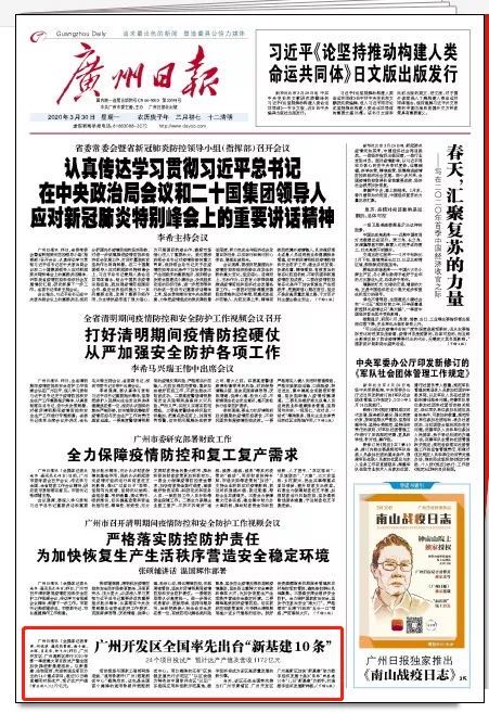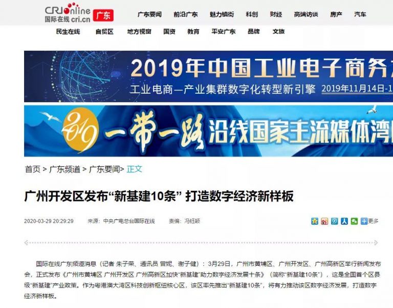 当天活动中,广州开发区、广州高新区在全国率先推出“新基建10条”,这是全国首个区县级“新基建”产业政策,以下多个央视栏目都进行了报道。