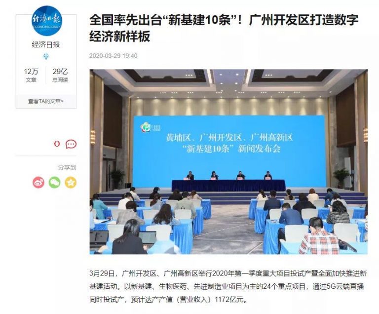 【经济日报】全国率先出台“新基建10条” 广州开发区打造数字经济新样板