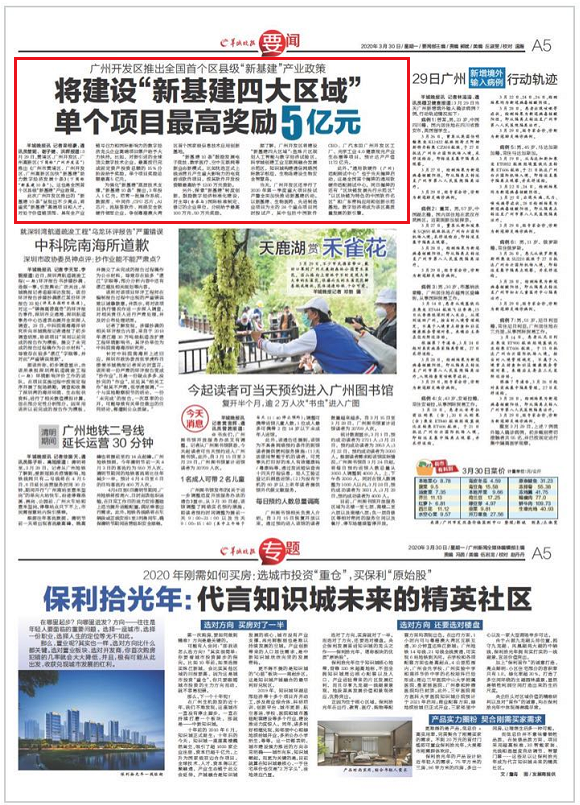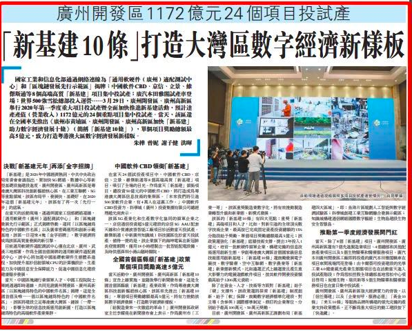 【广州日报(头版)】广州开发区全国率先出台“新基建10条”