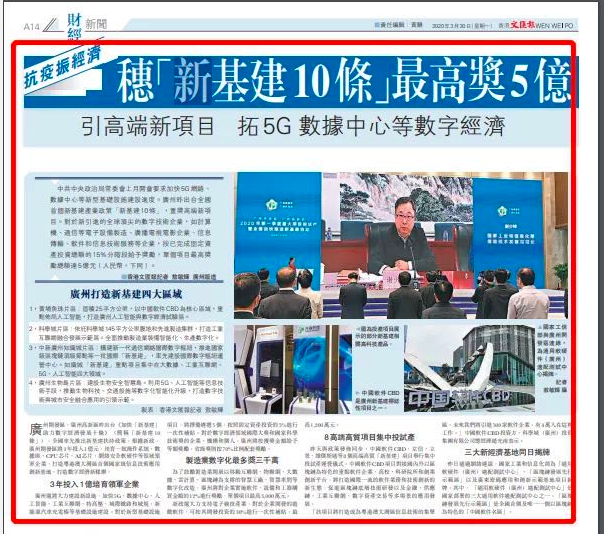 【文汇报】抗疫振经济 穗“新基建10条”最高奖5亿