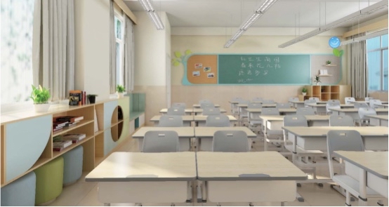 教室,承载的是班级美好未来的向往。浅灰、浅蓝、浅绿,颜色浓淡调和,给人以视觉上的宁静舒缓之美。一桌一椅,小小的一方天地,上课、展示、阅读、谈心、辅导,每一个角落、每一个细节都滋润着师生心灵,都跳动着教育的契机,如入芝兰之室,久而自芳。