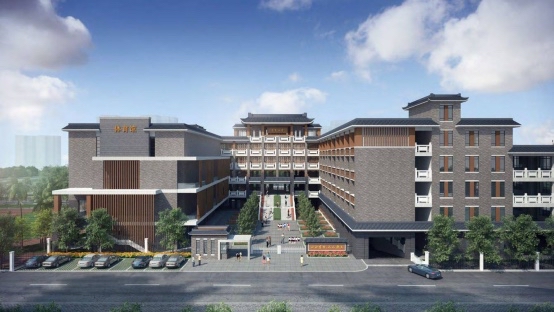 荟贤的建筑风格,积极吸收岭南文化建筑元素,深灰色的大楼 ,在黄、白的窗格、栏板点缀之下端庄典雅, 彰显着沙湾古镇厚重与清新兼具的文化底蕴,又跳跃着现代创新与灵动开阔的精神追求。