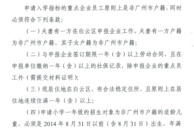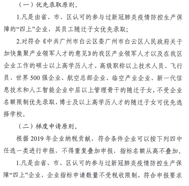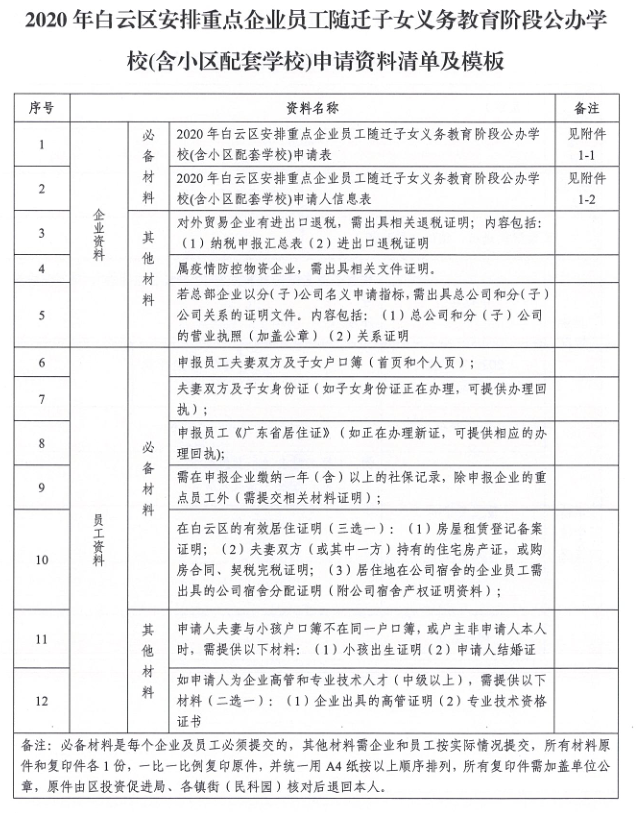 广州市白云区科工商信局日前发布《广州市白云区科技工业商务和信息化局 广州市白云区教育局关于印发2020年白云区安排重点企业员工随迁子女义务教育阶段公办学校(含小区配套学校)起始年级学位工作方案的通知》。通知指出,2020年白云区计划安排重点企业员工随迁子女义务教育阶段公办学校(含小区配套学校公办学位)起始年级学位1550名。