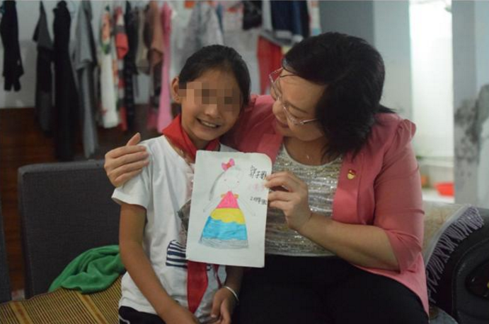 资料图:小雅把自画像高兴地送给上门慰问关心她的客人