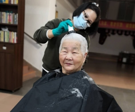 她带着护理员们征求了院内大多数老人家们的意见,发现老人们都很愿意剪头发,于是立即安排网购理发工具,带着几位护理员就临时上阵了!