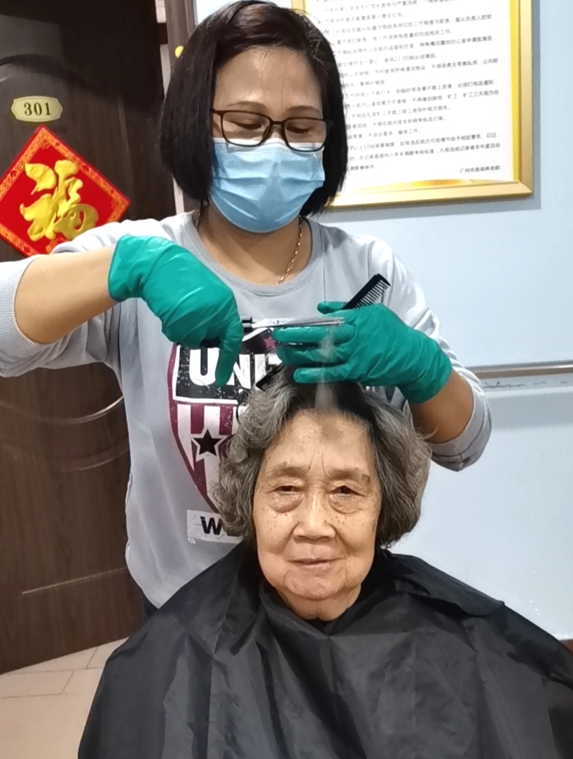 她告诉记者,给老人家剪头发其实很讲究。首先要征求他们的同意,有些不愿意剪头发的还要多“哄”一下,有些还对自己的发型有要求,要迁就老人家慢慢按照他们的要求去剪,“幸好剪出来他们也满意,然后我居然发现自己真的有点天赋哈哈”。沈院长对此颇为自豪。