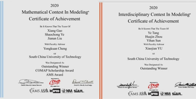今日,记者从华南理工大学获悉,日前2020年美国大学生数学建模竞赛和交叉学科建模竞赛(MCM/ICM)成绩揭晓,华南理工学子获得大赛最高奖项Outstanding Winner2项,获奖数量居全球第二。其中,高翔、叶绍崇、刘健安组成的队伍(指导教师:程永宽)以世界第一名的好成绩,额外获得了冠名奖COMAP Scholarship Award。该奖项仅奖励全球成绩最佳的四支参赛队伍,奖金为1万美元。