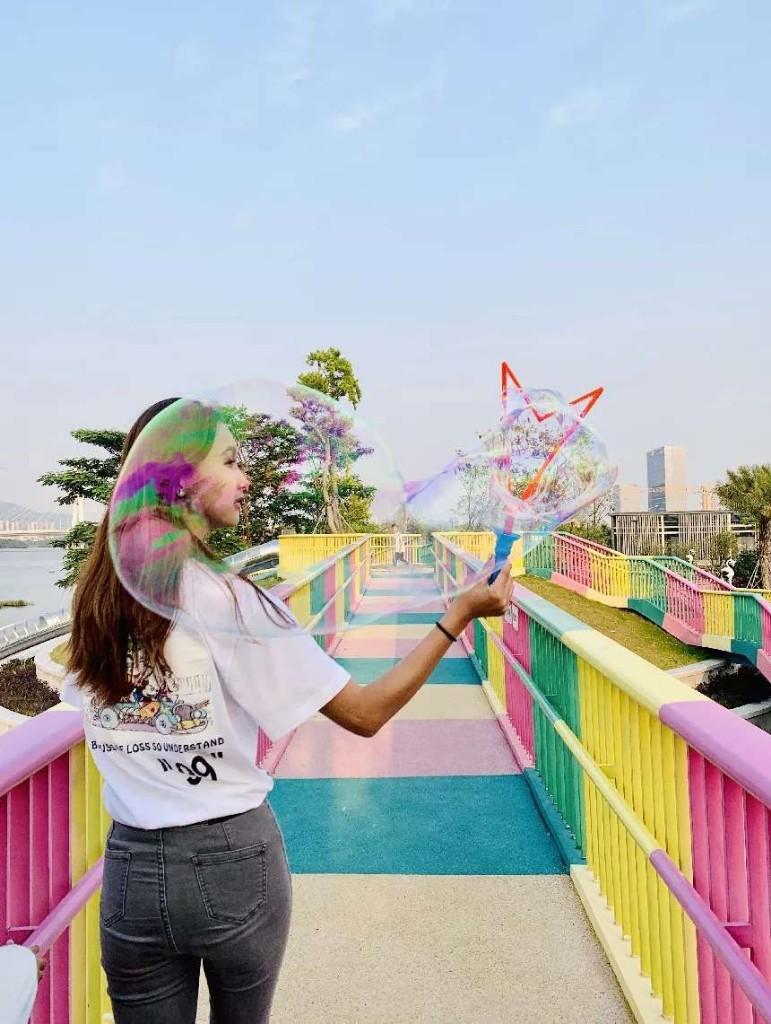 靈山兒童公園內嘅繽紛連廊好吸引眼球,行入其中,好似踏入趣味迷宮。可以喺呢度放風箏、吹泡泡,搭配明媚陽光,小清新走起!