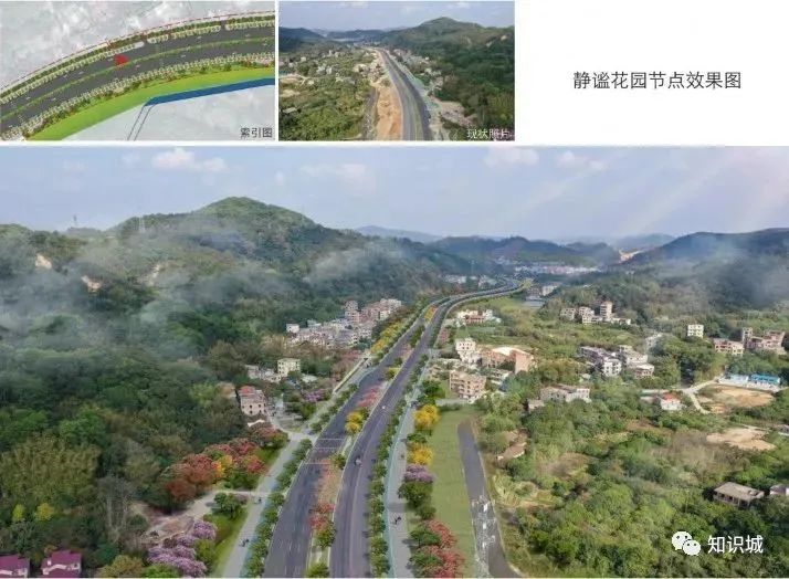 广汕公路金坑-增城界段设计主题为“知识之路彤云绿廊”。