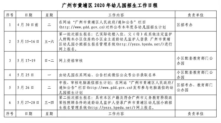 5月15-16日、5月27-28日申请教育部门公办园学位的符合条件的小区业主幼儿父(母)或其他法定监护人需要再次登录广州市黄埔区幼儿园小班招生报名管理系统(http://yezs.hpedu.net /)填报该批次志愿的,登录账号、密码不变。