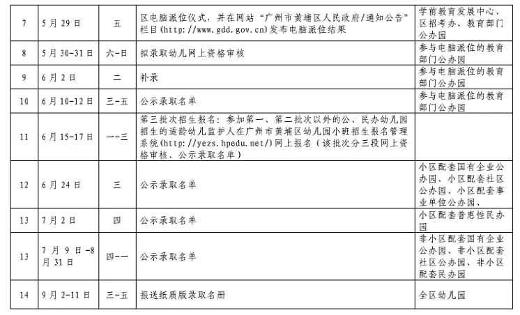 2020 年黄埔区幼儿园招生报名分三批次进行: