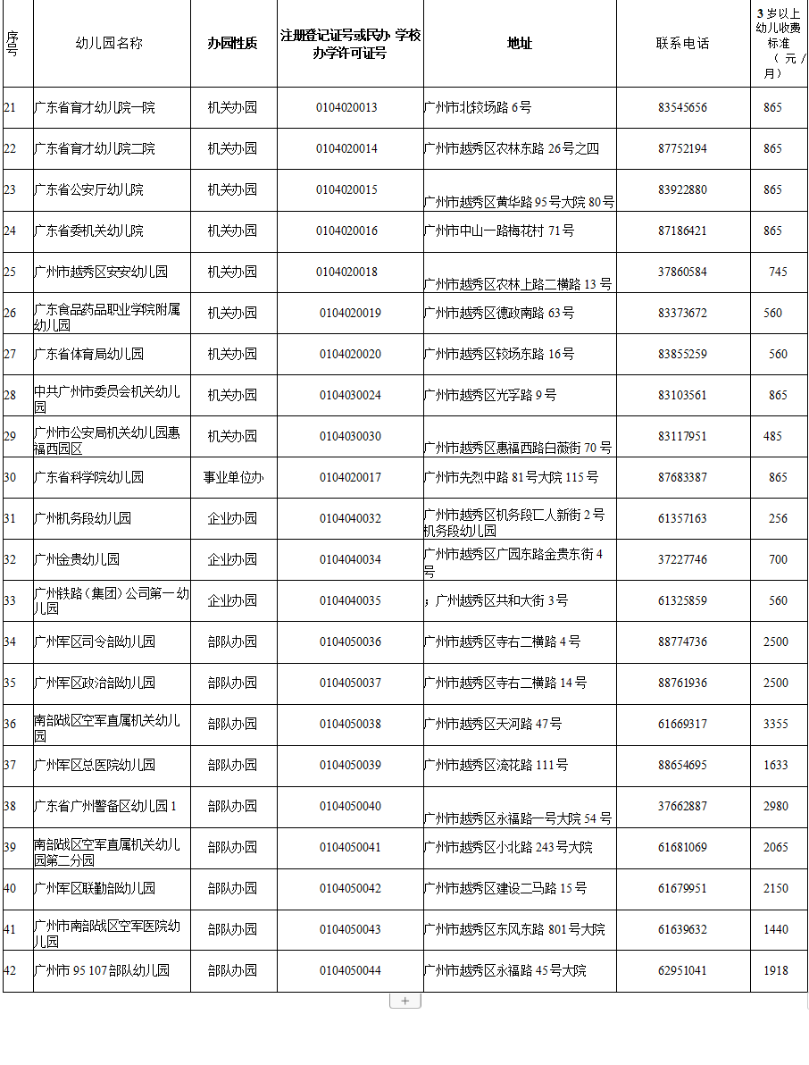 机关及企业办园:广东省委机关幼儿院、广州铁路(集团)公司第一幼儿园等;