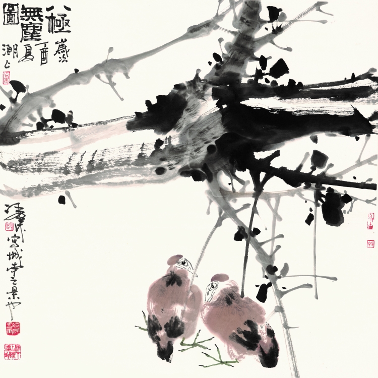 中国画有独特的表现手法,以意出之。布局之小中见大,从虚实中出意境,立足与画外。写奇巧之体势,可纵横而神生。花卉用色,参调墨之法淡淡运化以意出之。古人认为惟苍老能饶秀,嫩之则更难。《东庄画论》语:画之妙处,不在华滋,而在雅健,不在精细,而在清逸。盖华滋精细可以力为,雅健清逸则关于神韵骨骼,不可勉强也。