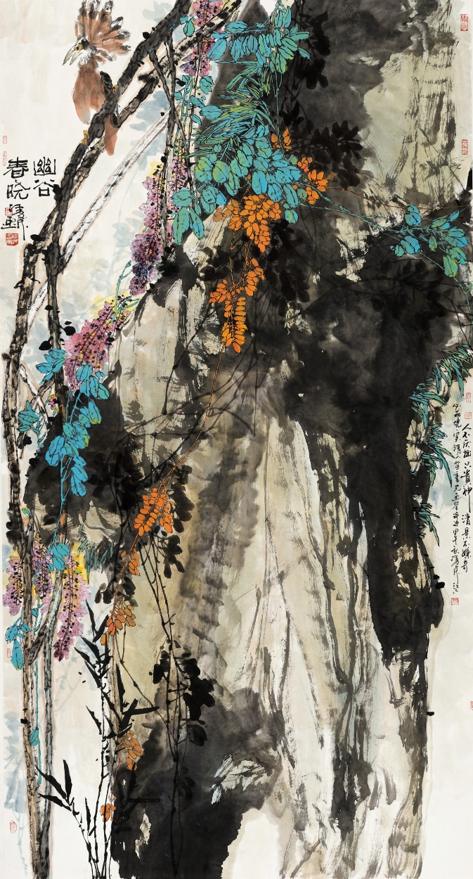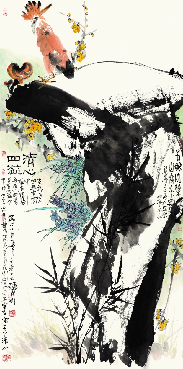 源于生活,在平淡中见豪迈气概的写意画精神在画内也在画外,骨气奇伟,万类皆妙,中华风物绚丽多彩多姿,花鸟争奇斗艳。画者应用高雅拙朴的笔墨手法来表现现代又传统的中国画的精神与韵味。