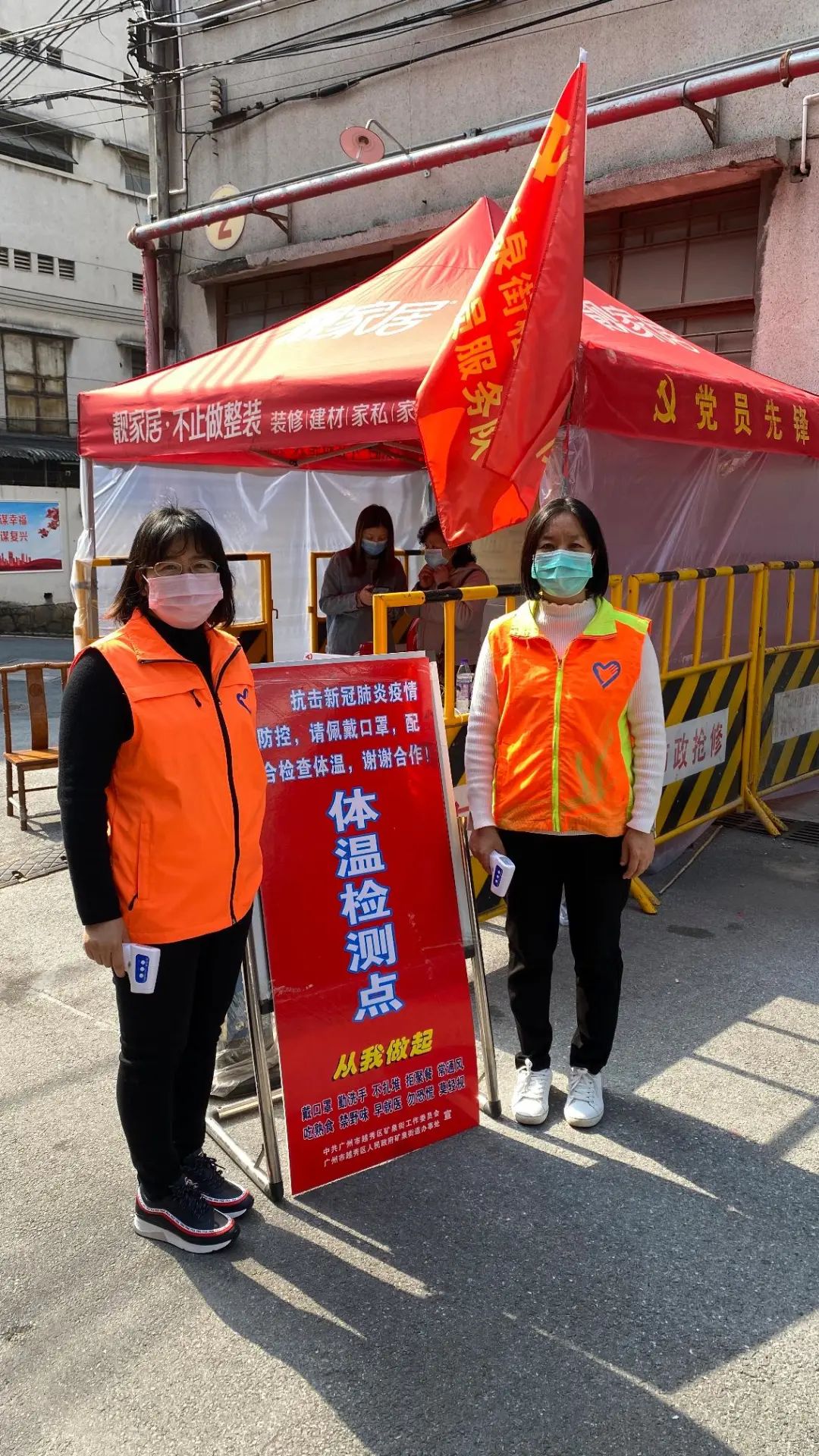 黄志芬老师(左)和同事参与值岗