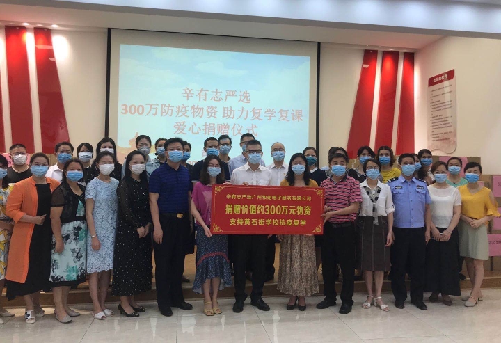 5月11日,全市初一初二、高一高二学生以及部分具备开学条件的高校毕业班即将迎来返校复课。5月9日,广州市白云区黄石街辖内的爱心企业向街道的26所中小学、幼儿园捐赠了价值300万元的防疫物资,助力各校园复学复课后的疫情防控工作。