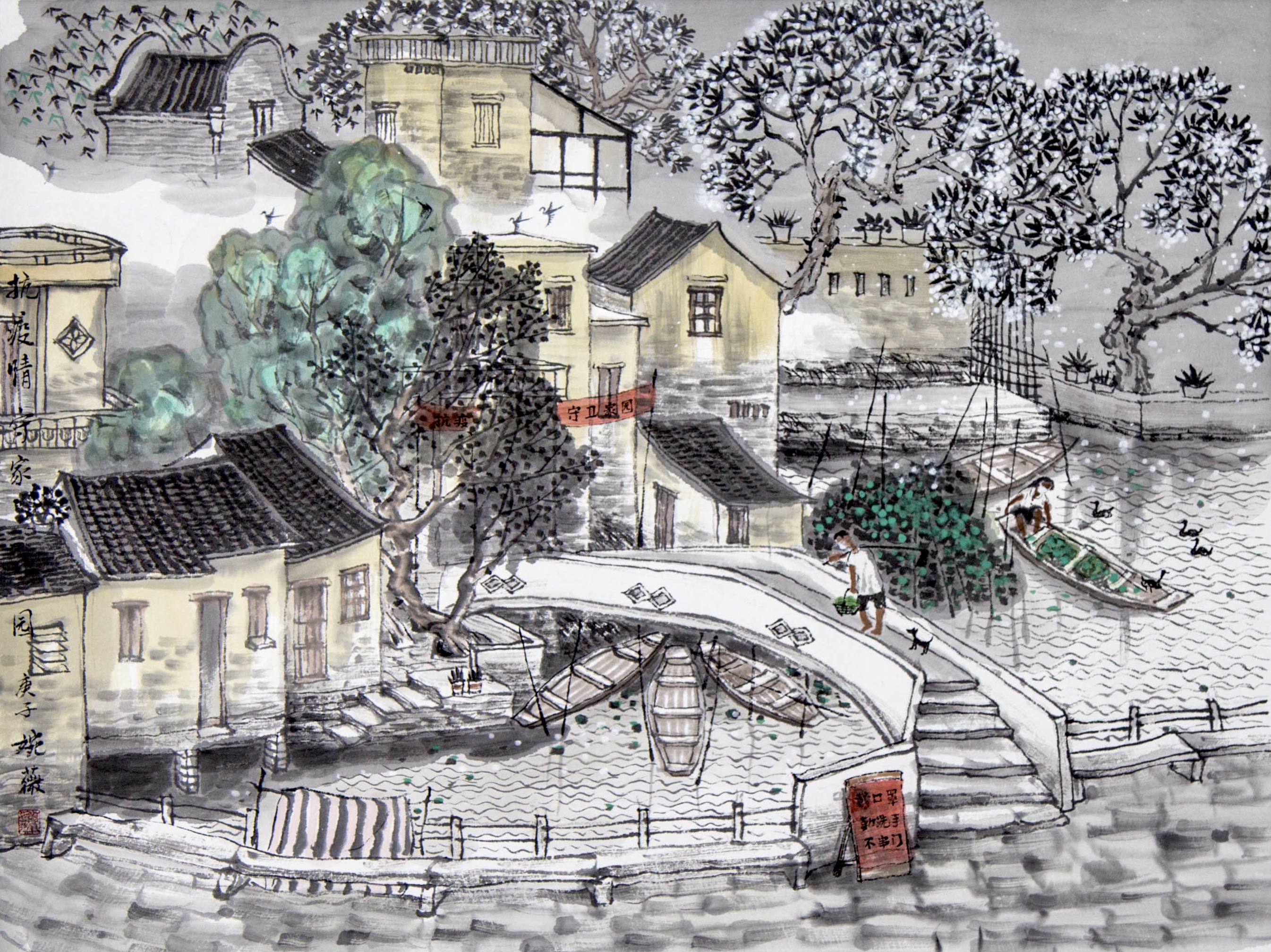 何婉薇《抗疫情守家园》 国画46cmx34cm