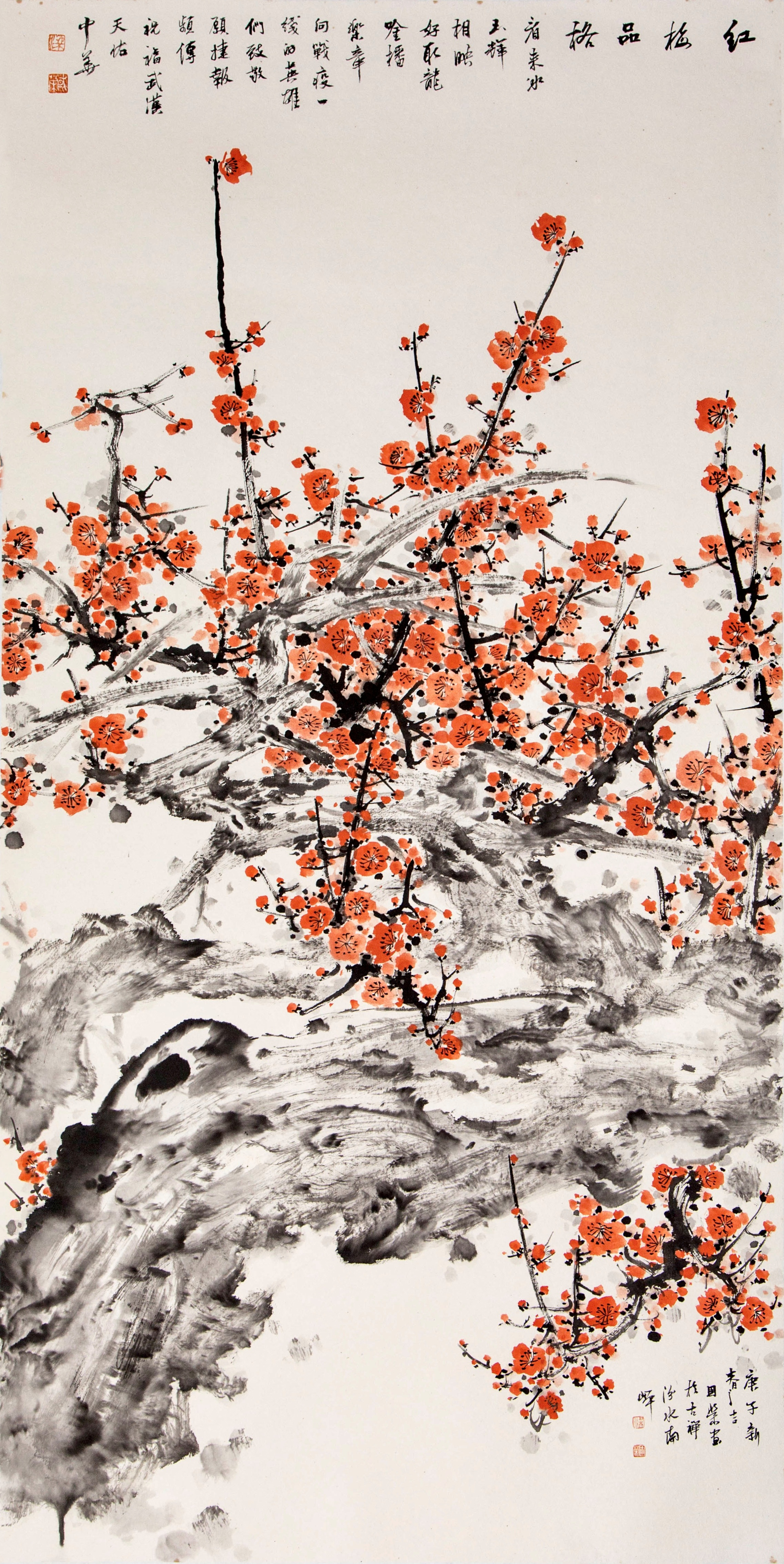 梁国荣《红梅品格》 国画 138cmx69cm.jpg