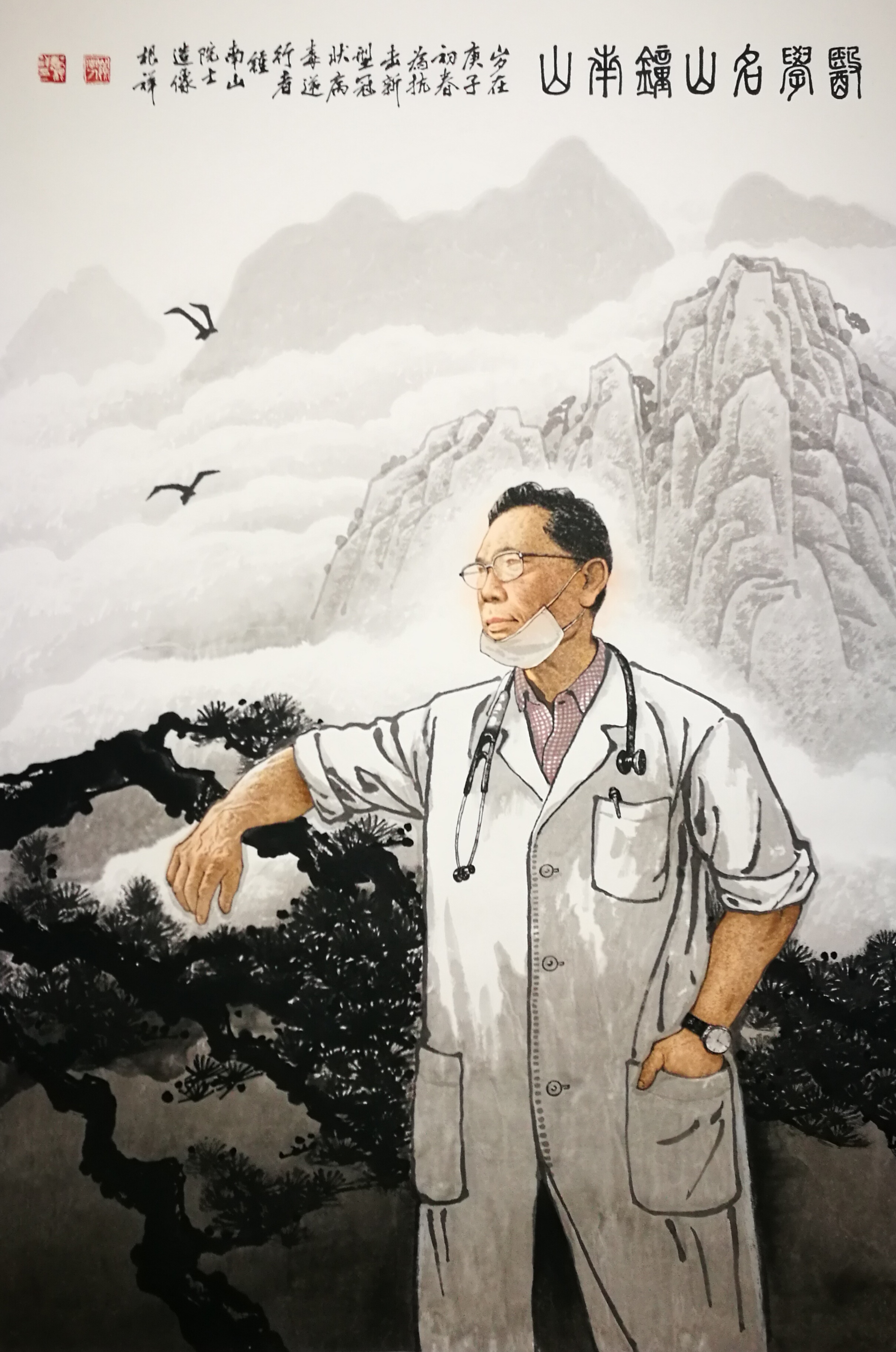梁根祥《医学名山—钟南山》 国画 140cm×94cm