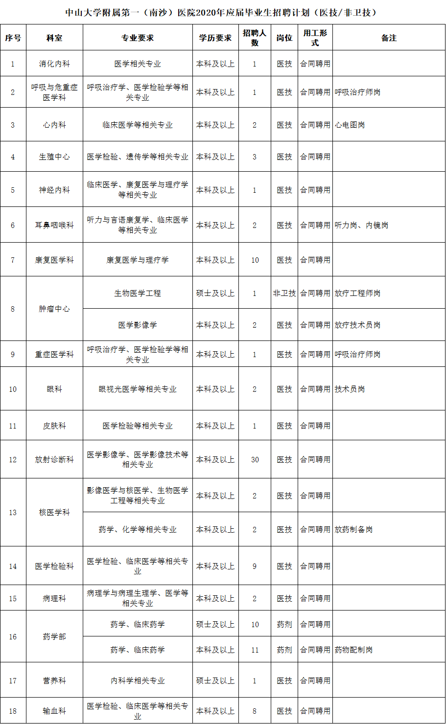 本次招聘共涵盖18个科室,招聘人数102名