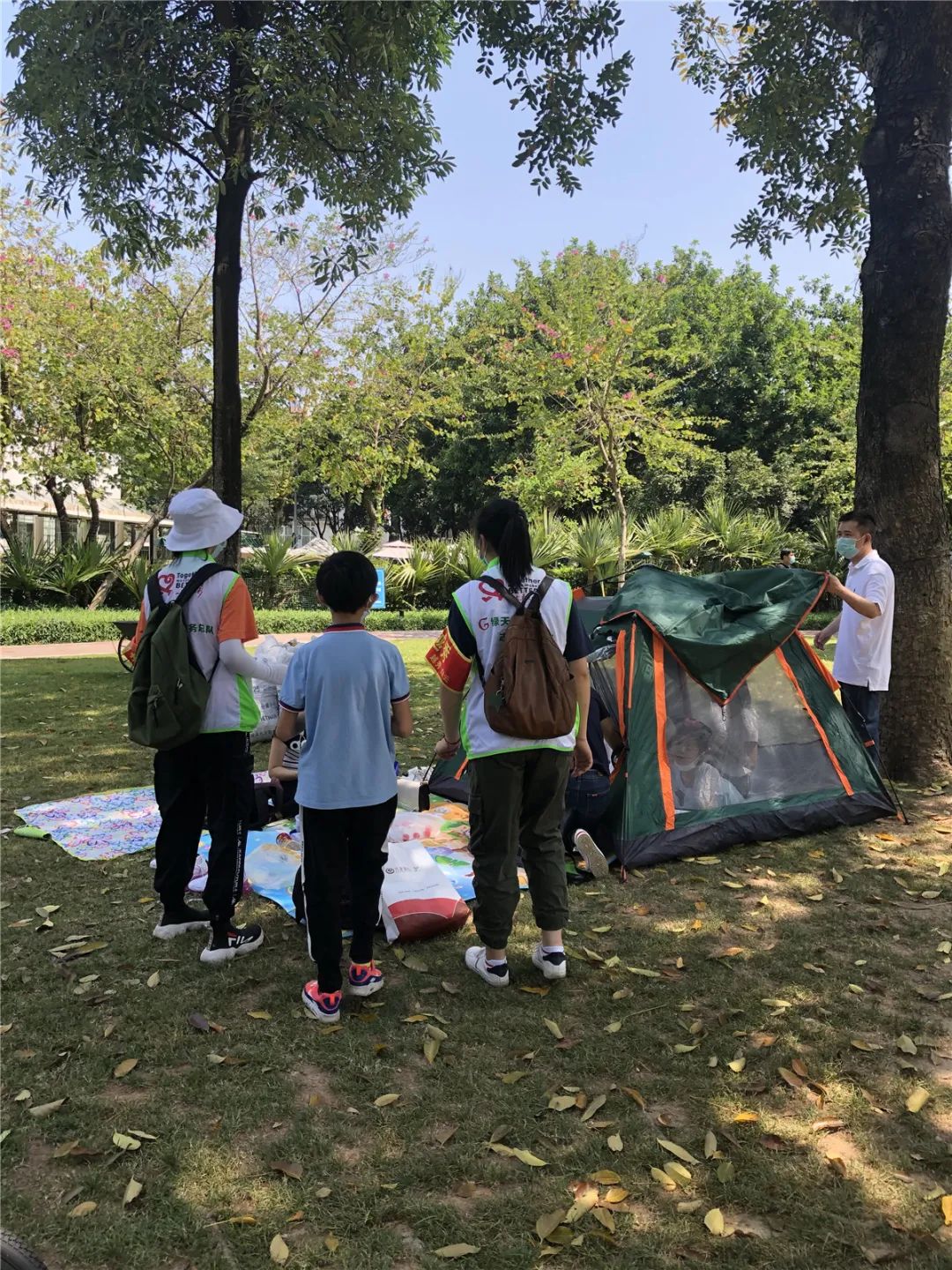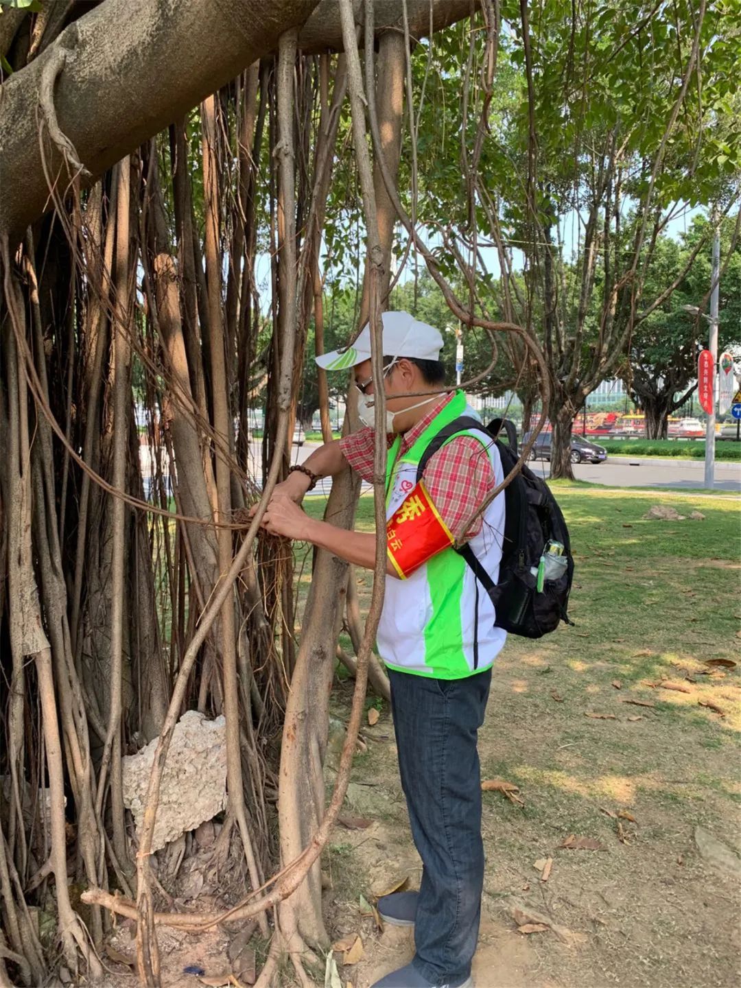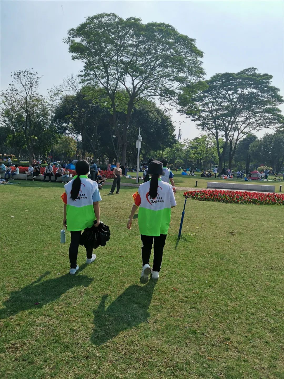 本次疫情防控期间,在广州市绿道办、白云街党工委、办事处指导下,绿天使服务总队在二沙岛多个公园场所开展秩序维护、防疫劝导和宣传活动,劝导游客爱护树木、草坪,不挂吊床、不搭帐蓬。考虑到园区内人流较多,风筝线较长容易发生意外,对过往行人有一定的安全隐患,志愿者们也一直劝导游客自觉遵守公园管理条例,不在公园内放风筝。