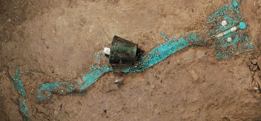 ▲哈佛大学艺术博物馆藏二里头文化绿松石兽面牌饰。