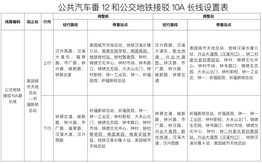 为了完善区内公共交通配套,方便兴业大道西汉溪村、中华大道东段群众公交接驳出行,6月13日将对公共汽车公交地铁接驳10A长线和番12线路进行优化调整。