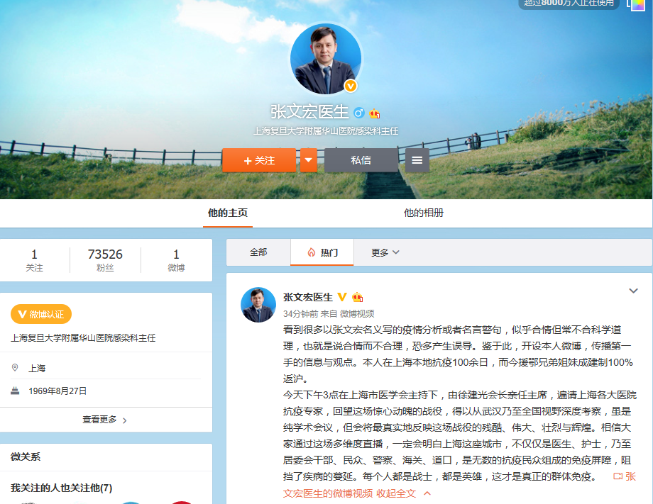 一个月后的5月11日,张文宏医生微博正式注册。
