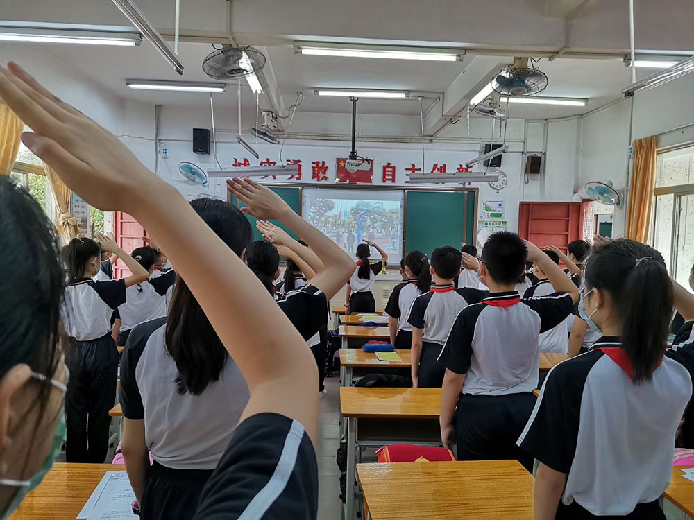 而南海灯湖小学的“返校第一课”主题为《点亮心湖,礼赞中国》,由五、六年级班主任主讲。课上,班主任播放了新冠肺炎教育视频,向同学们讲述了疫情防控期间涌现出的感人事迹,引导全体同学从疫情和灾难中汲取力量,增强社会责任感、国家荣誉感和民族自豪感。同时,班主任详细讲解了《新型冠状病毒疫情学校防控手册》,组织同学们开展了互动交流和讨论,让学生进一步掌握学校疫情防控工作指南和流程。