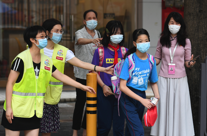 玫瑰小学六年3班学生家长金妈妈也把女儿送到了学校:“之前通知返校时,我就来学校附近看过,看看学校的防疫措施。今天是返学第一天,我就特意来送送,我们家住得近,之后我们就不接送了。”金妈妈说,在假期里,自己也会对女儿的学习进行辅导,对于返校,她和女儿都保持着平常心。