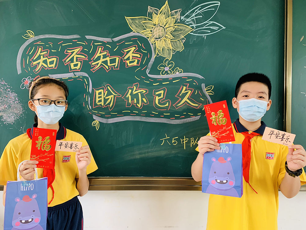 在经历了一个漫长而特别的假期后,今日,佛山首批小学生有序重回校园!有小学生直言:“在家很无聊,上学很开心!”为了营造一个暖心返校环境,不少学校和老师们别出心裁,准备了苹果、心意卡、印有名字和鼓励语的可乐、随机抽取的暖心卡片送给学生。有学校表示,在复学前两周,将适当放缓教学进度,少布置课后作业,减轻学生学业负担,让学生逐步适应和平稳过渡。