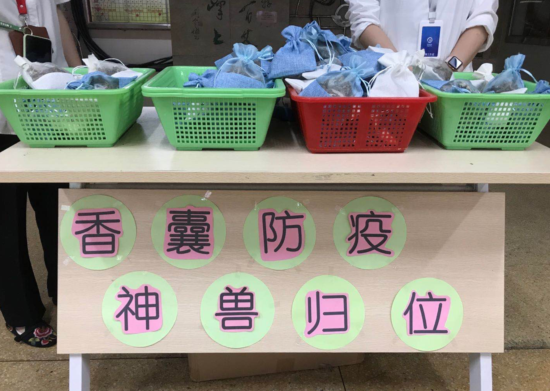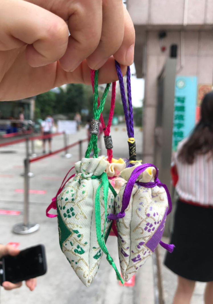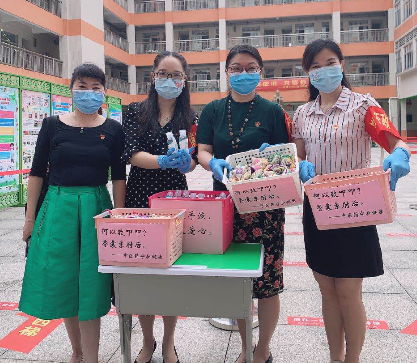 花都区新雅小学在校门口为每名学生派发“特殊礼物”——香囊和洗手液。香囊是新雅小学的老师们为学生专门制作的,老师们寄望每位新雅学生勤洗手、保健康,平安快乐复学。