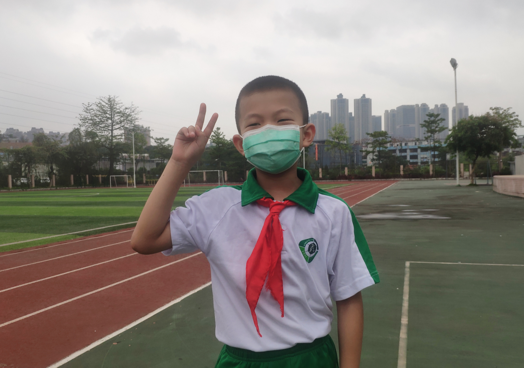 返校之后,花都区新雅小学从上午第二节课开始,为学生安排“透气时间”。每天上午,每班有25分钟透气时间。老师把学生带到空旷的操场,大家隔开距离,摘下口罩,享受无障碍呼吸。