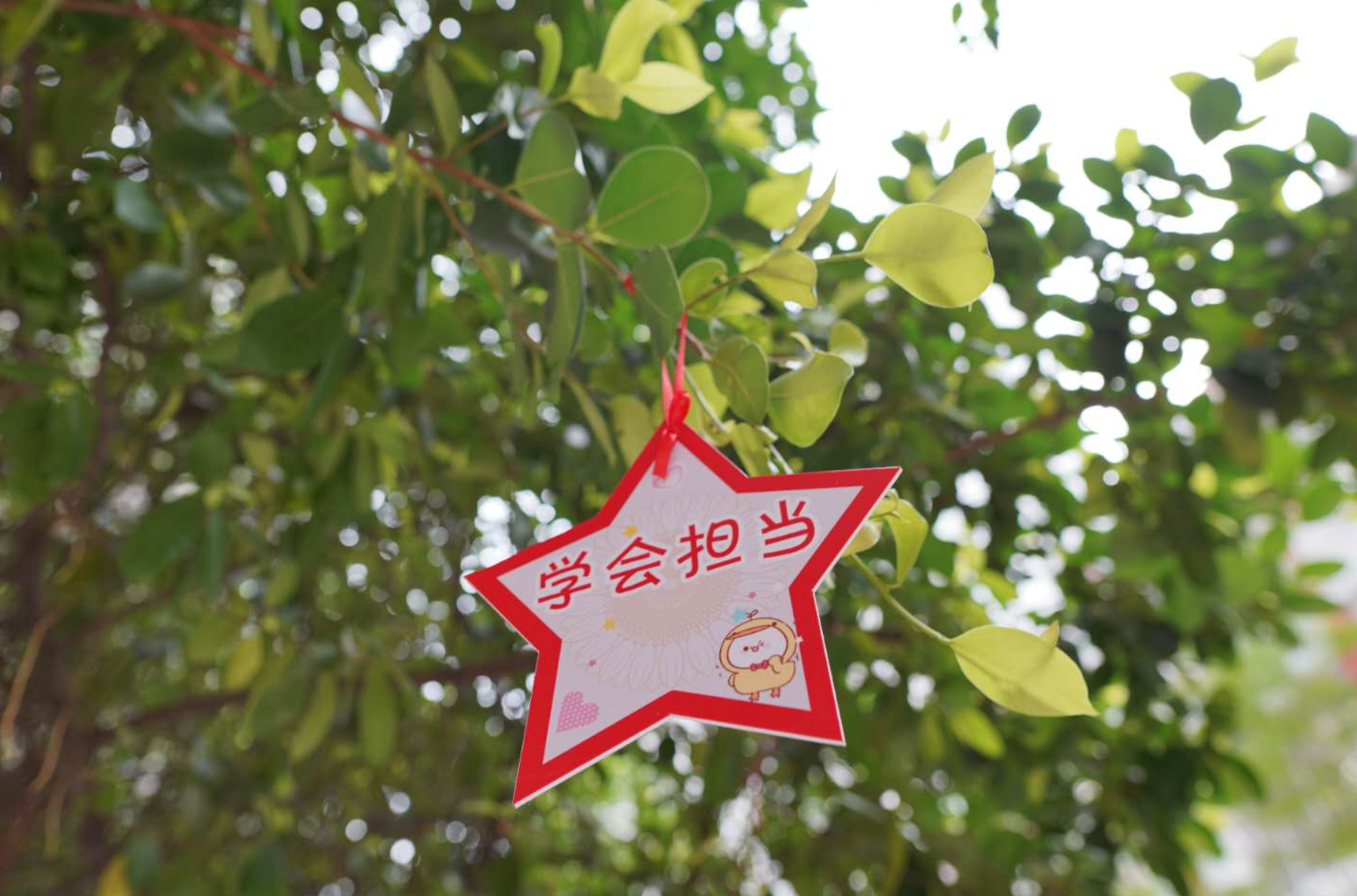 广州天河华康小学,校园幸运树挂上“元气满满”、“学会担当”小卡片,课室里板书“欢迎回家”,暖心话让复学孩子快速进入状态。