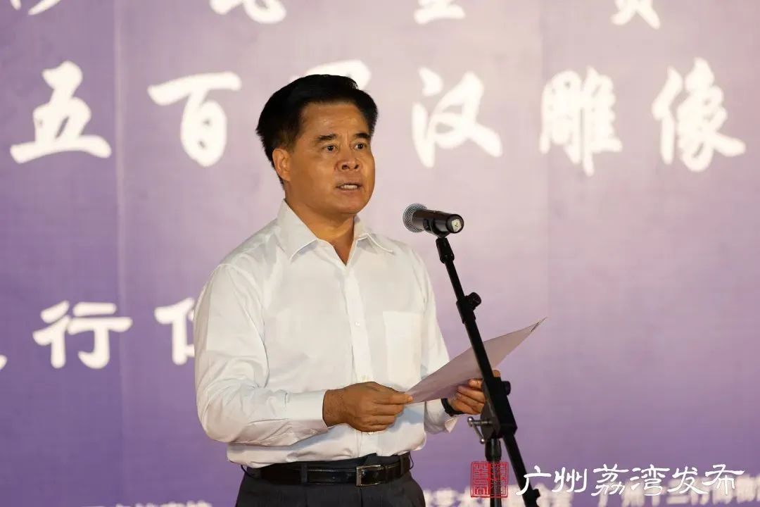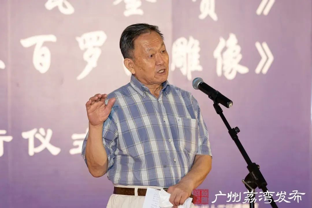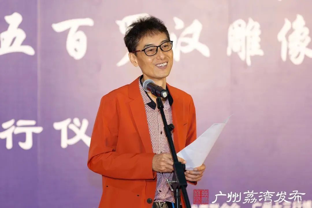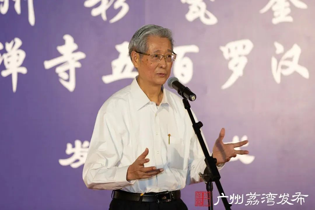 广州市书法家协会名誉主席、知名书画家连登介绍《华林禅寺五百罗汉雕像》。
