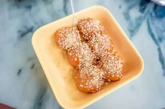 淋上黃糖漿和香脆嘅芝麻花生粒,仲隻隻都好大粒添