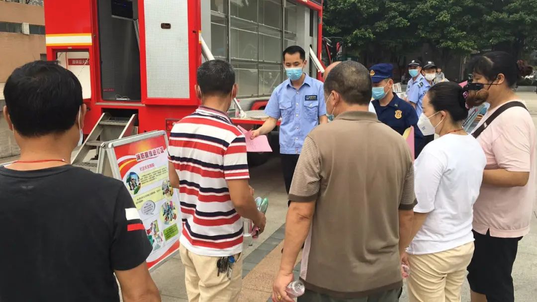 现场,户外大屏滚动播放的消防安全宣传视频吸引了周围的街坊前来参加。网格员们一边向街坊派发宣传资料,一边面对面向街坊们讲解消防事故的危害、防溺水相关知识,并指导他们如何参与整治出租屋消防安全隐患。