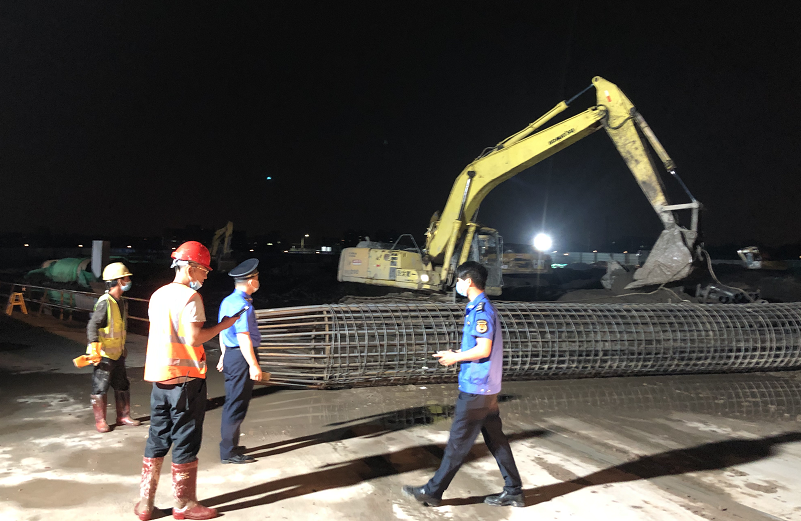 5月13日深夜,城管执法队4名执法人员对辖区7个在建工地进行详细检查,重点检查各个工地是否存在无证夜间施工、夜间违规清运建筑废弃物的行为。经查,受检7个工地中,有2个工地存在无证夜间施工行为,执法人员现场对工地进行教育,责令其立即停止施工行为,并发出《责令限期改正通知书》,要求工地负责人到城管执法队接受调查处理。