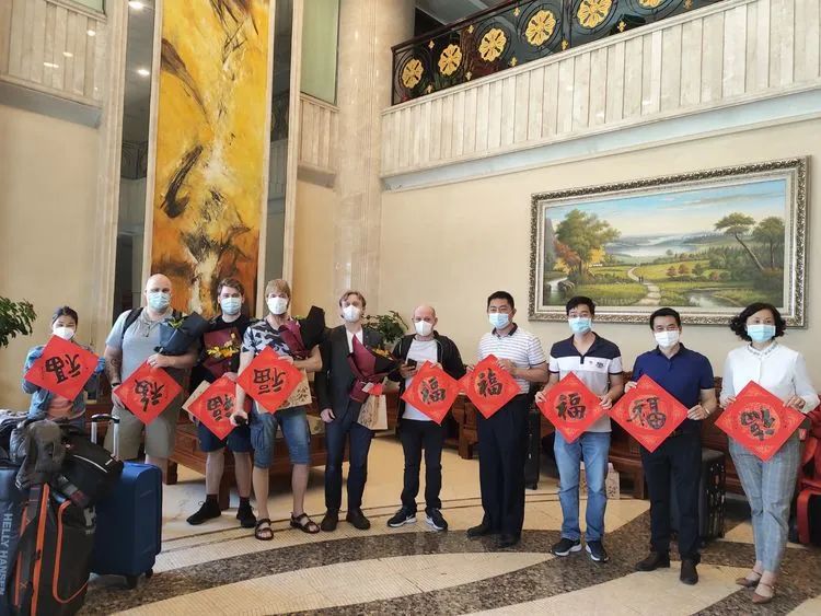 “我们回家啦!”4月29日,维也纳酒店终于迎来了第一次硬仗的胜利,第一批旅客全部如期解除隔离,黄志安和工作人员一起为他们送上精心准备的鲜花、小礼品以及由区书法协会书法家书写的“福”字贴,祝福他们能够平安回家,一切安好。而在这14天里,背后有着黄志安与驻点工作人员24小时的繁忙和守护:穿着笨拙的防护服,黄志安为客人来回上楼送行李、送餐,虽然已经大汗淋漓、全身湿透,他还是和工作人员一起坚持下来完成了旅客的入住工作。