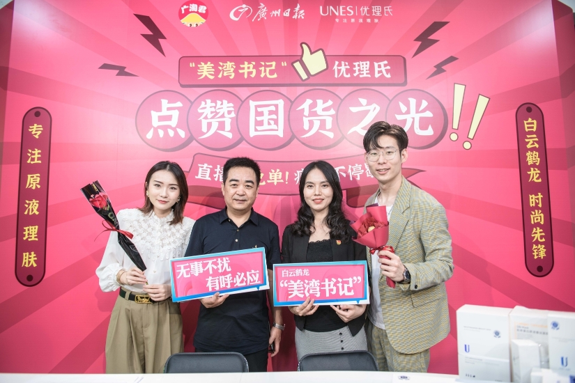 5月20日,广州市白云区鹤龙街党工委联合广州日报举办“520美妆直播间”推出首场直播带货。白云鹤龙“美湾书记”肖秀玲,广州日报“广淘君”带货主播携手在四大直播平台进行电商直播带货,推介鹤龙街辖内美妆龙头企业优理氏的多款产品,点赞国货之光。三个小时的直播中,四大平台共计37万粉丝在线观看,点赞数超201万。
